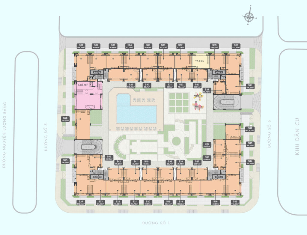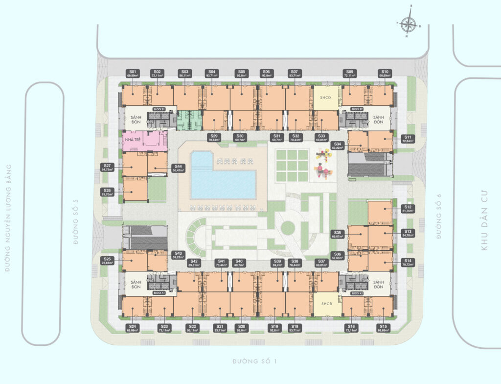 - Số căn hộ:1.008 căn (diện tích 50,53 – 75,59m2)